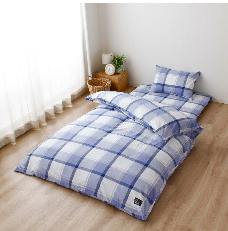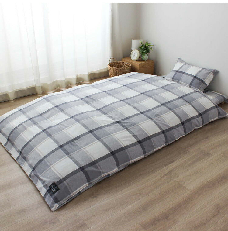掛けふとんカバー 幅150cm Hyppiness ダブルサイズ 綿100%洗いざらし チェック柄 8か所スナップボタン付き ふんわり優しい肌ざわり 210cmファスナー