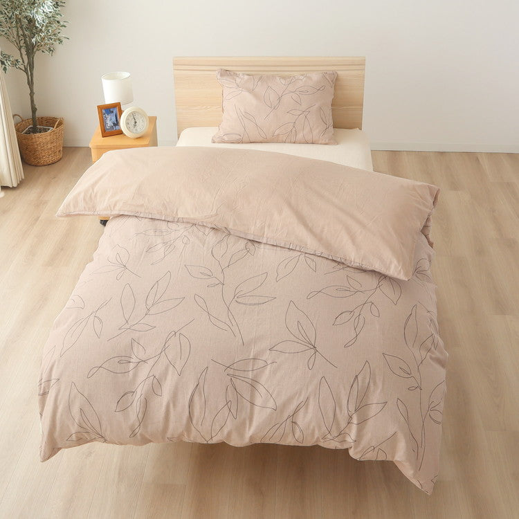 綿100%の優しい肌ざわりの掛けふとんカバー♪ラインリーフ柄の優しい色味の2色展開でトータルコーディネートが出来るのでオススメです。