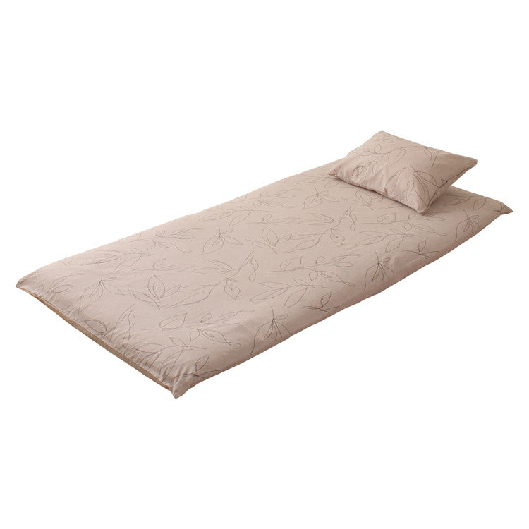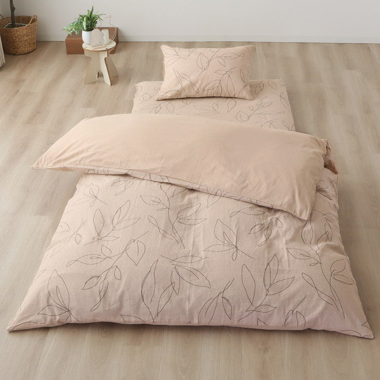 表:プリント 裏:無地カラー 綿100%の優しい肌ざわりの敷きふとんカバー♪ラインリーフ柄の優しい色味の2色展開でトータルコーディネートが出来るのでオススメです