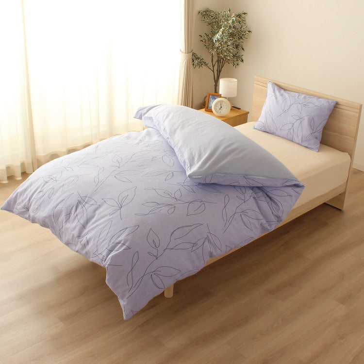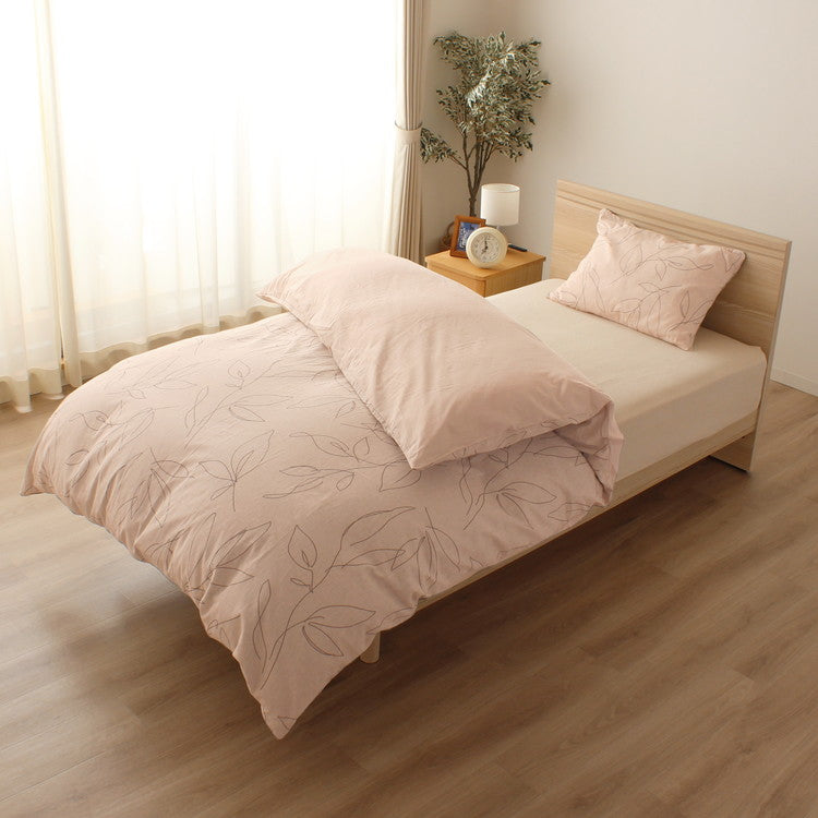 綿100%の優しい肌ざわりのピロケース♪ラインリーフ柄の優しい色味の2色展開でトータルコーディネートが出来るのでオススメです