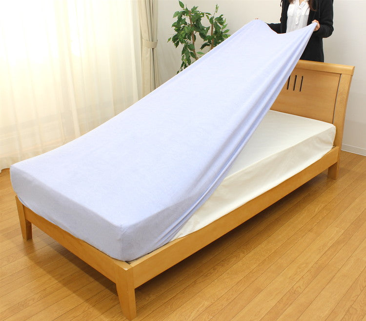 ぐいーーんと伸びてピタっとフィットするタオル地のシーツ パイルシーツ シングルサイズ マットレス・敷ふとん 兼用(80×185×30cm) 伸びる 生地 触り心地 気持ちいい 簡単着脱 無地