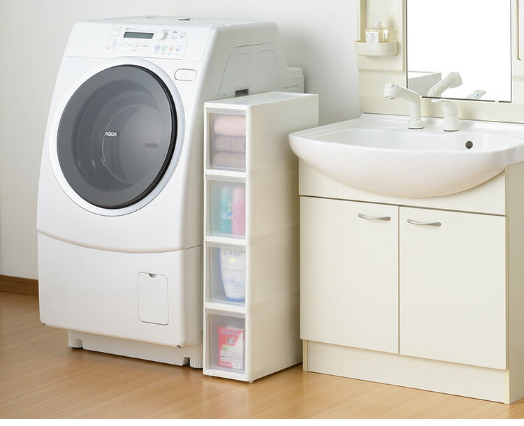 リセ スリムストッカー 幅18cm 引出し4段 M4 日本製 JEJ ジェイイージェイ すき間収納 隙間 収納ボックス 小棚 6段 キャスターつき 収納ケース プラスチック収納 キッチン 洗面所 脱衣所(代引不可)