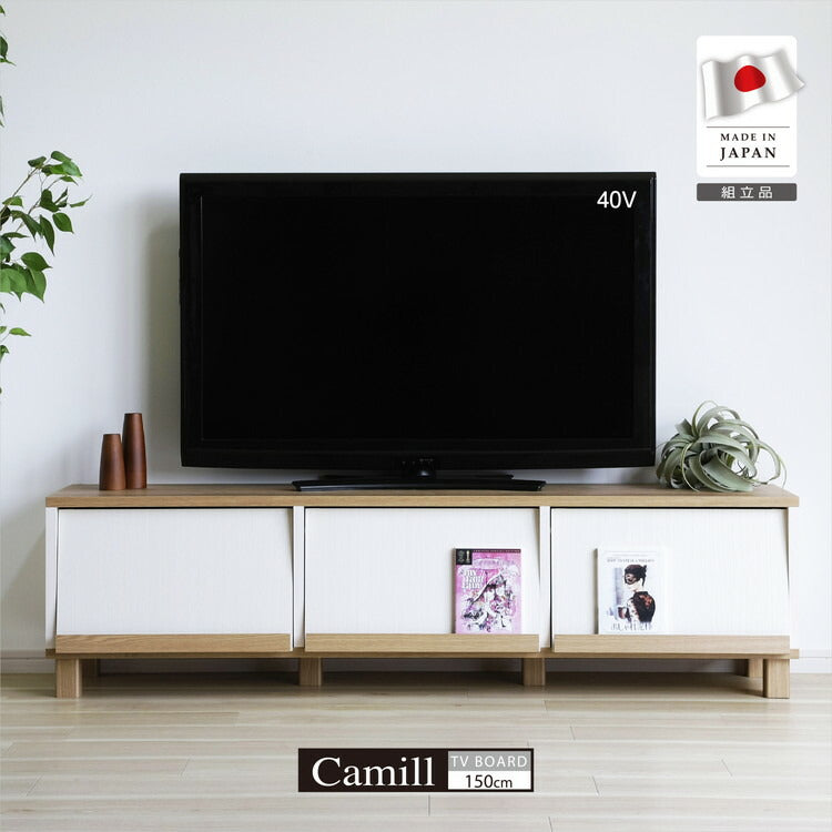 日本製 フレンチカントリーローボード カミール 幅150cm テレビ台 2トーンカラー 魅せる×隠す収納 テレビボード リビングボード ローボード TVボード フラップ扉 収納 ディスプレイ(代引不可)