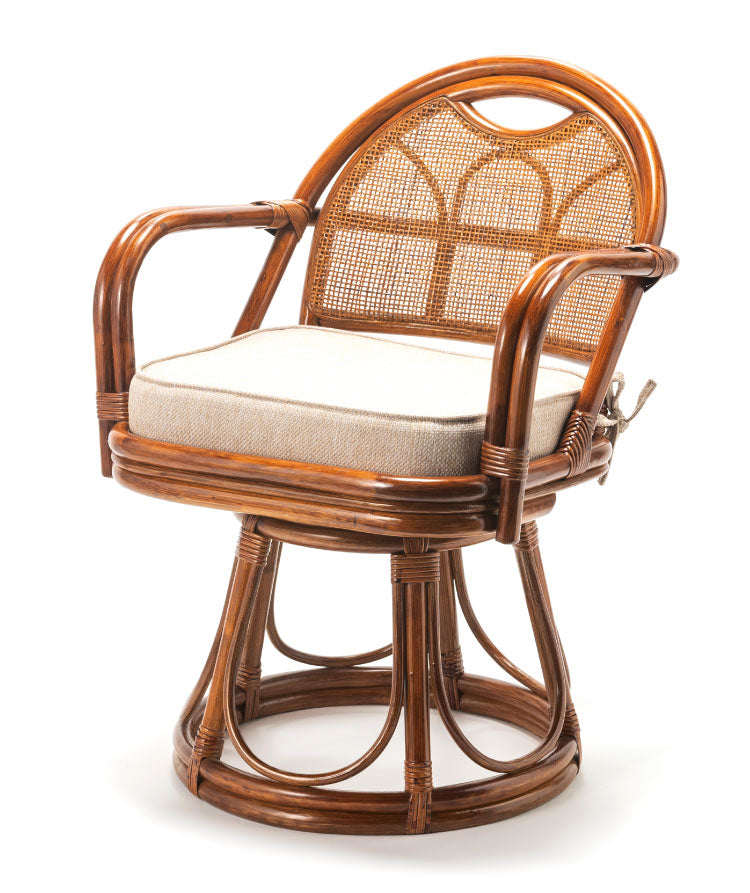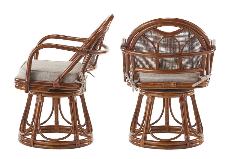 椅子 ラタン チェア 肘掛け付き 背もたれ付き ラタン回転椅子ハイ 高座椅子 籐 天然素材 丈夫 しなやか 通気性 年中快適 回転チェア 軽量 クッション付き 滑り止め 和風 和室(代引不可)