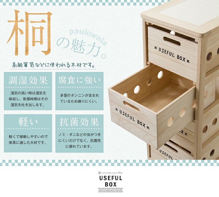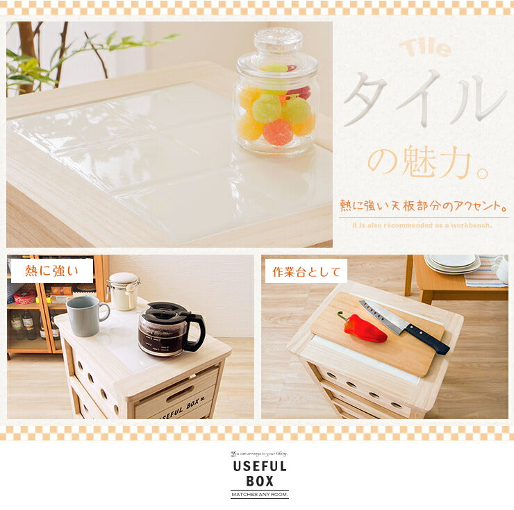 キッチンワゴン ワゴン キッチン 収納 キャスター タイル 天然木 桐 引き出し 4段 作業台 キッチン収納 木製 野菜ストッカー(代引不可)