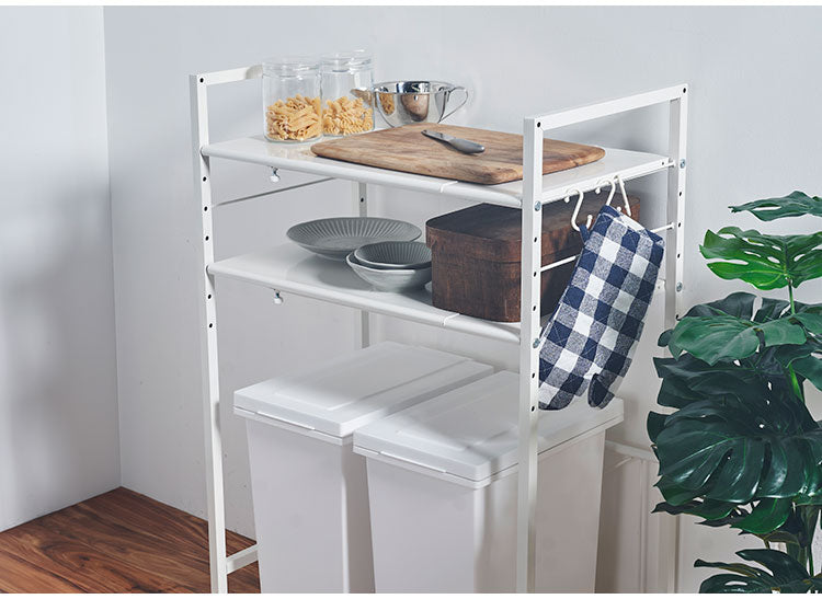 ゴミ箱上ラック 棚2段 伸縮式 幅56~76cm 奥行41cm 高さ110cm 棚板高さ調節 レンジ台 レンジラック ごみ箱上ラック ゴミ箱ラック ごみ箱ラック ダストボックス 2個 ごみ箱収納 ゴミ箱収納 棚(代引不可)
