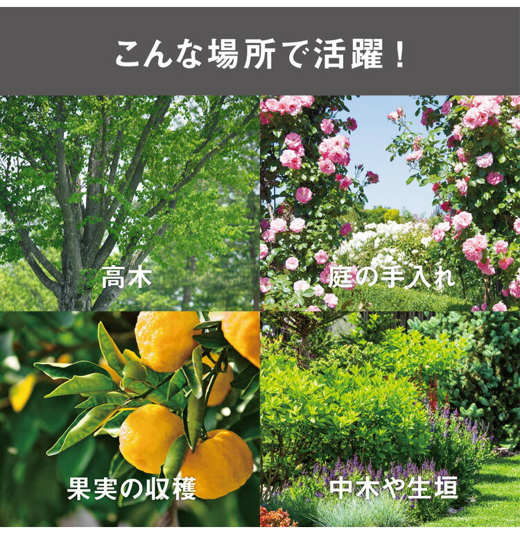 新構造ハンドルで力が入れやすく楽に枝を切るれる構造になった、13段階伸縮高枝切り