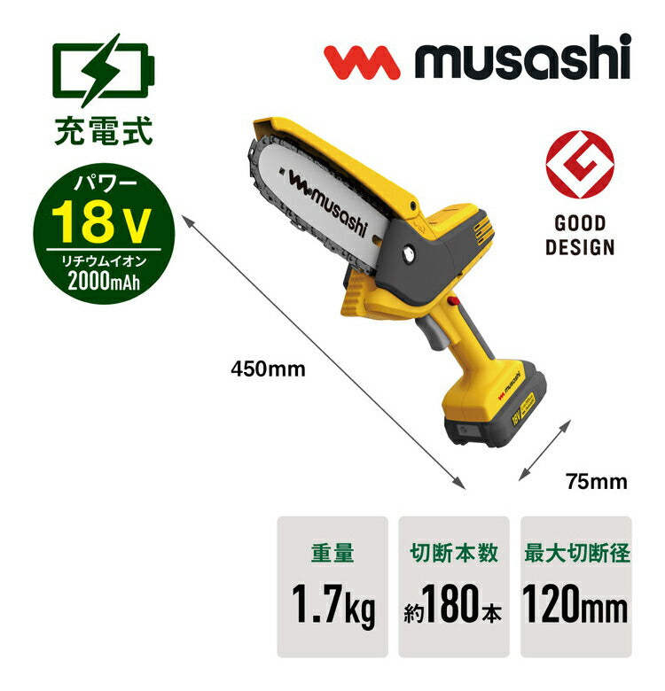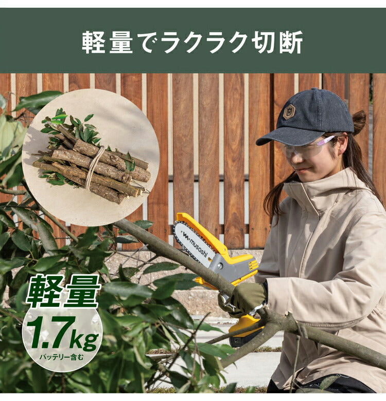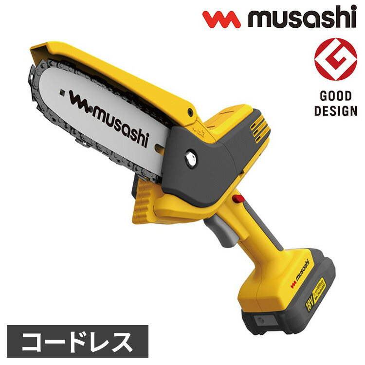 ムサシ 充電式ハンディチェーンソー HCS-6000 コードレス 軽量 パワフル チェーンソー チェンソー 庭 ガーデン 園芸 musashi(代引不可)