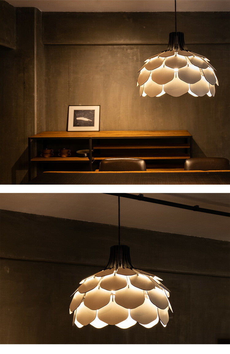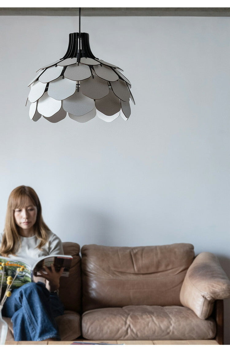 たくさんの羽を組み合わせて構成されたこのライトは植物の種子のような優しいフォルムを持っています。