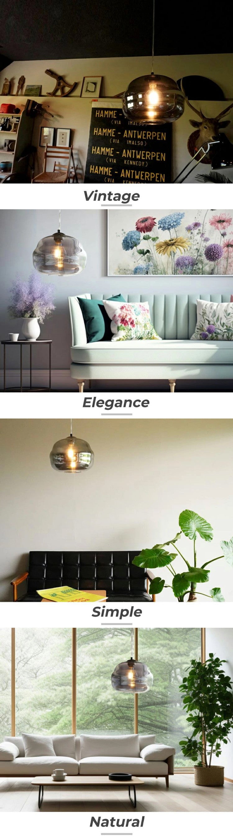 ガラスのカラーにバリエーションがあり、スモークガラスを採用したモデルは間接光をうむので、柔らかい光をはなちます。