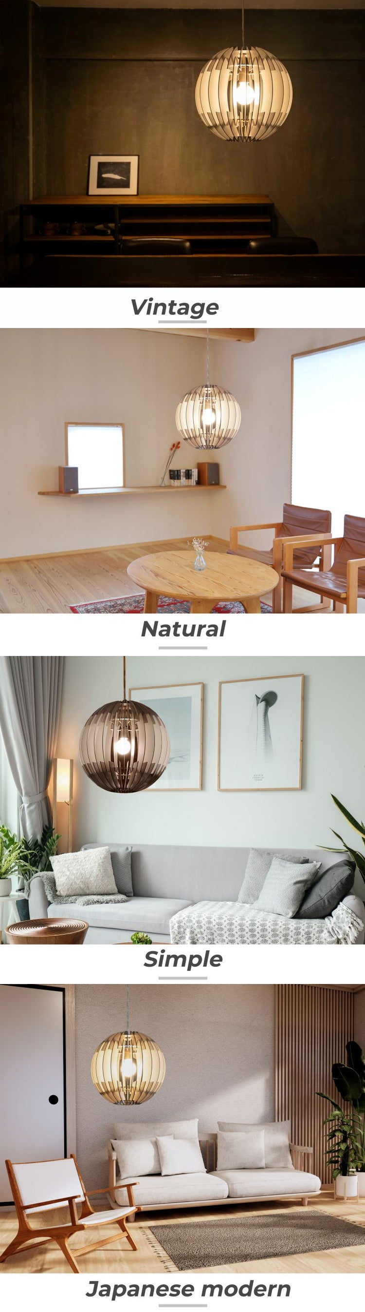 特徴はなんといっても天然素材の木材を使用していることと、ボリューム感のでるペンダントライトであるということ。凝った形を実現しながらもコストパフォーマンスを重視しました。