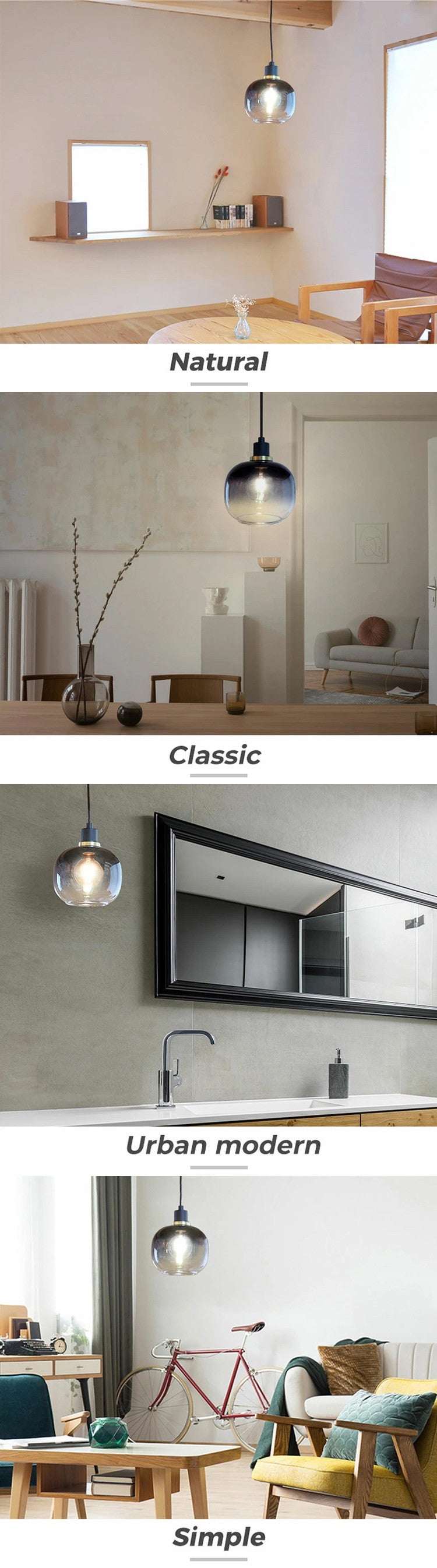サイズは少し小さめですが、リビングルームやダイニングルームだけでなく、カフェやホテルなど、お部屋のサイズに合わせて、いくつも吊り下げるのもヨーロッパの嗜み。