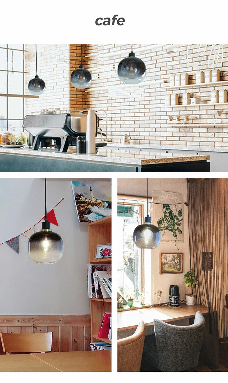 宇宙空間をイメージした球体のガラスシェードに、落ち着いた黒とグレーのグラデーションが魅力の「大人なペンダントライト」。