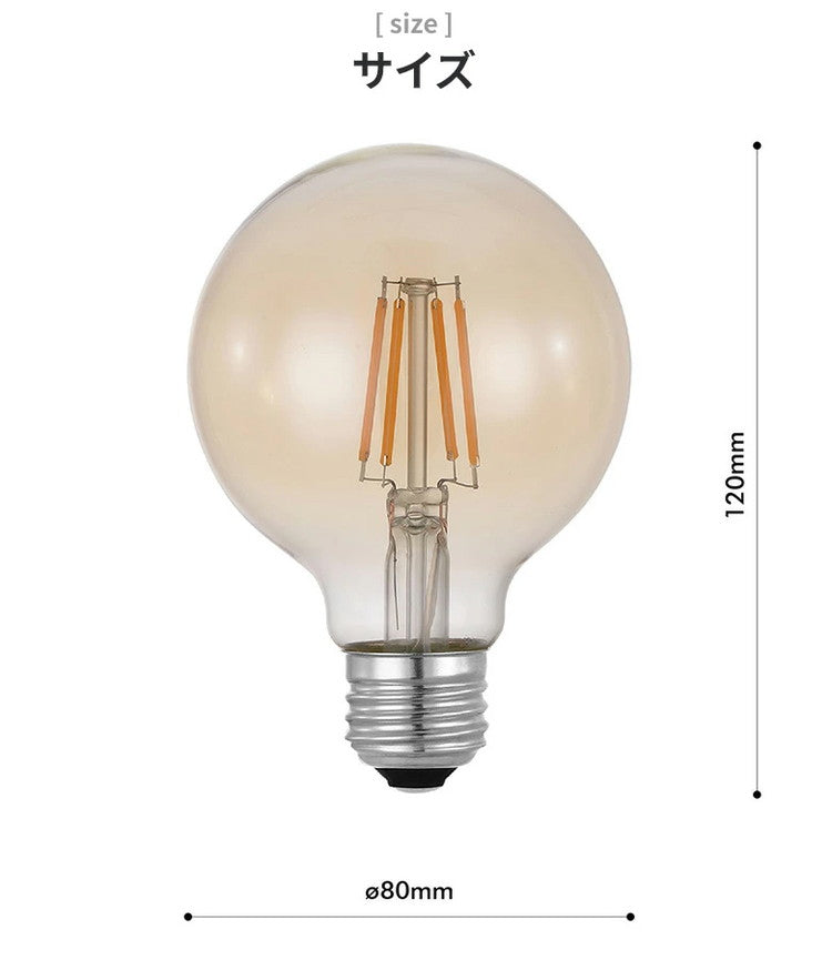 アンバー色のレトロな明かりのLEDフィラメント電球です。