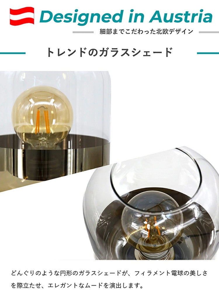 ガラスアイテムは現在のヨーロッパのトレンド。フィラメント電球の美しさが映える、クラシックでタイムレスなビンテージスタイルがエレガントなムードを演出します。