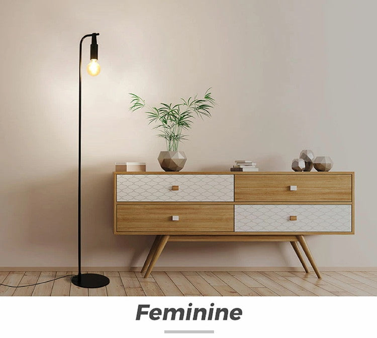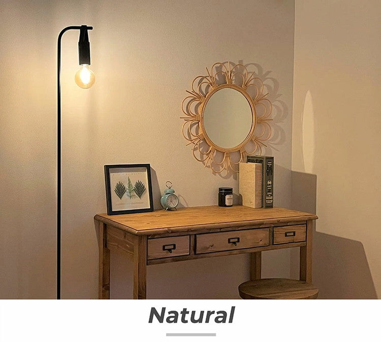 簡略された支柱部分やソケットにくわえ、唯一のアクセントとなるレザーのハンドルが品をもたせ自然なやさしさをあたえてくれています。北欧インテリアに合う素朴でカジュアルなデザインです。