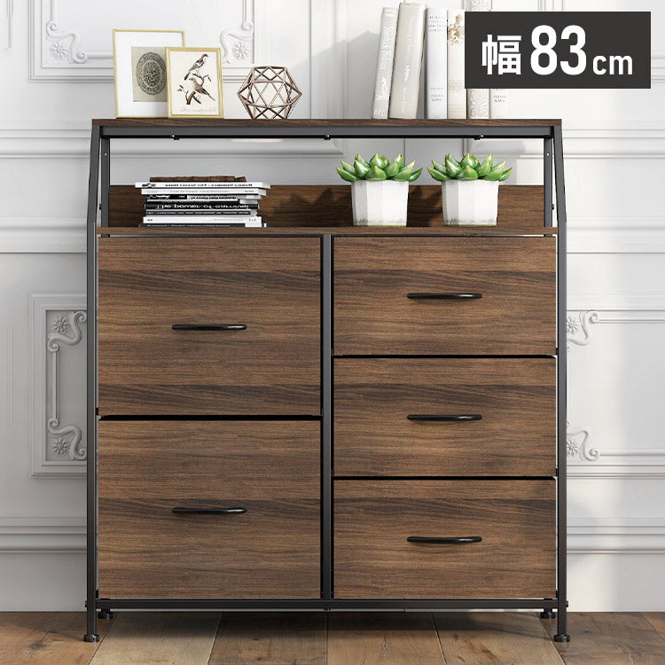 インテリアチェスト 幅83cm 引き出し5杯 ワイドチェスト スチール ラック 棚 引出し 引き出し収納 リビング収納 衣類収納 本棚 シェルフ 棚付き チェスト 北欧 シンプル おしゃれ(代引不可)