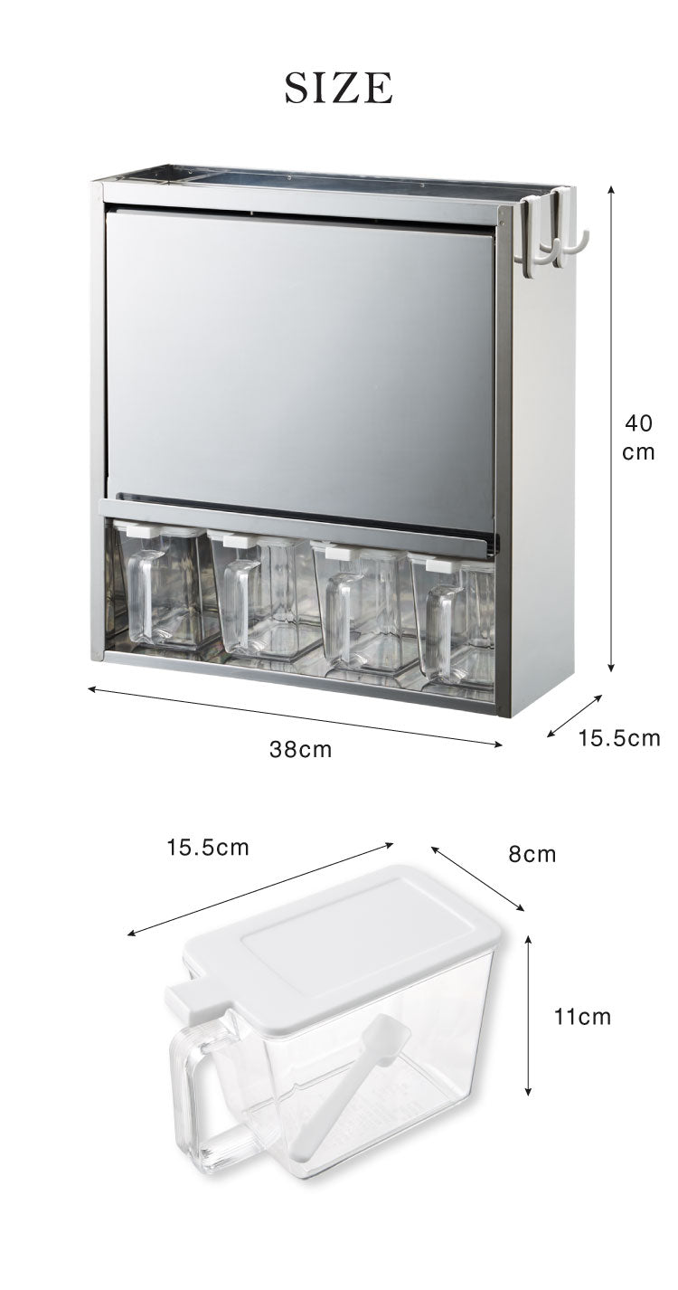 日本製 燕三条 スパイスラック 4杯 ステンレス 調味料ポット付き フラップ扉 調味料ラック キッチン収納 調味料 カウンター上収納 調味料入れ キッチン コンパクト シンプル おしゃれ 棚 卓上 台所(代引不可)