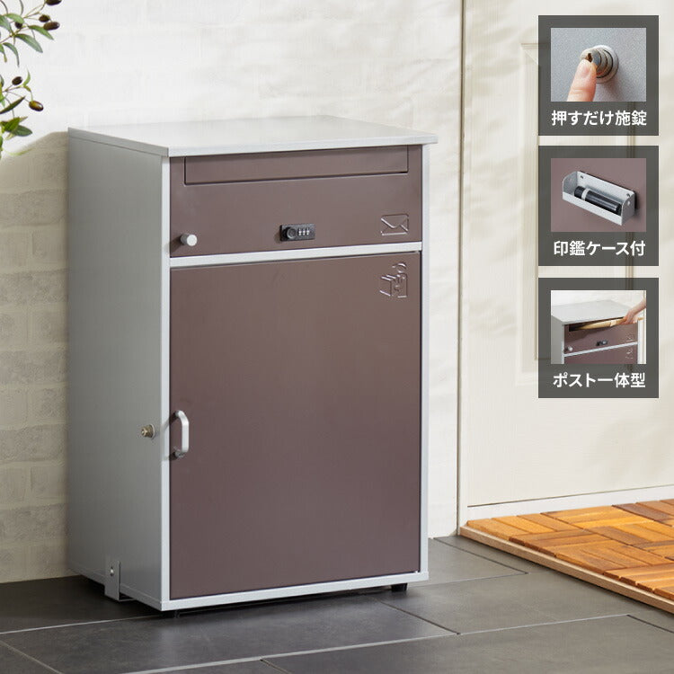 郵便ポスト付き 宅配ボックス ワイド 2段 ブラウン 一体型 置き配用 宅配便・メール便対応 1戸建て用 完成品 工事不要 宅配BOX 大容量 ポスト 前入れ前出し 屋外(代引不可)
