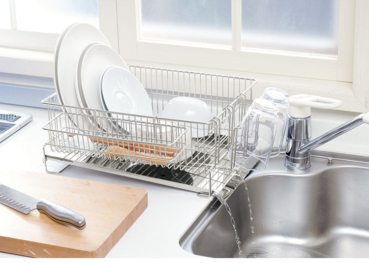 丈夫で衛生的なステンレスをたっぷり使用。網目が細かいので多くの食器を立てられます。