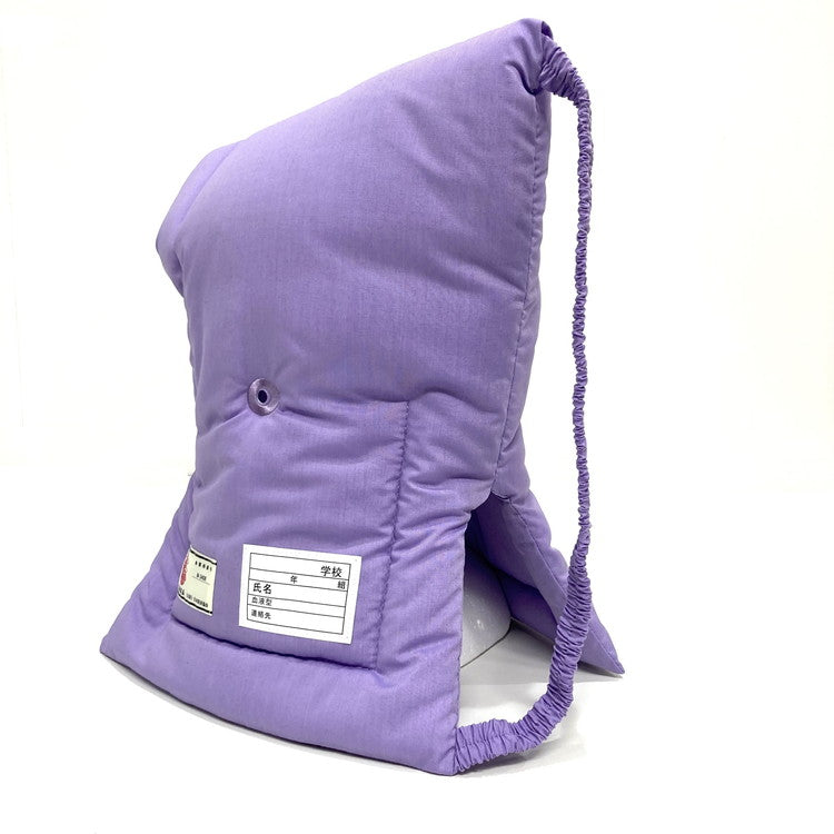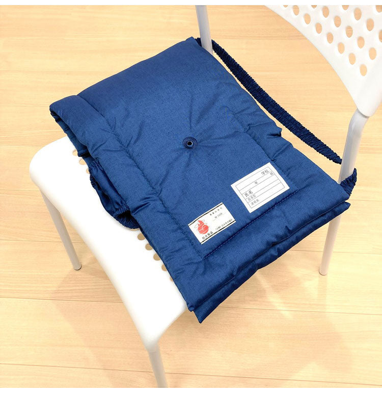 ●ご家庭で手洗い可能。防災ずきんカバー(別売)とセットでご使用頂くと、学校用イスに取り付け、クッションやざぶとんとしてご使用頂けます。