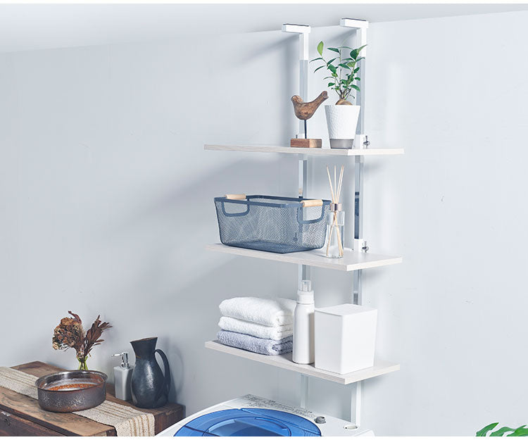 設置場所を選ばない 突っ張り ランドリーラック 幅55cm ロータイプ 高さ135~208cm 棚板3枚 突っ張り つっぱり ランドリー 洗濯機ラック 棚 ラック ランドリー収納(代引不可)