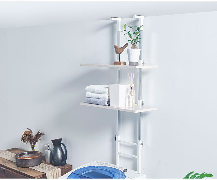設置場所を選ばない 突っ張り ランドリーラック 幅55cm ロータイプ 高さ135~208cm 棚板2枚 突っ張り つっぱり ランドリー 洗濯機ラック 棚 ラック ランドリー収納(代引不可)