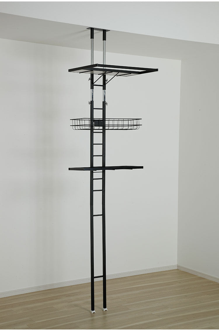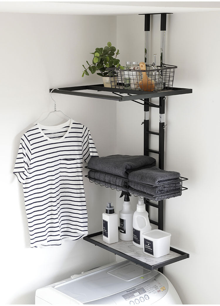 突っ張り ランドリーラック 幅58cm ハイタイプ 高さ210~263cm ハンガーバー付き 防水パン対応 棚板リバーシブル 突っ張り つっぱり ランドリー 洗濯機ラック 棚 ラック ランドリー収納(代引不可)