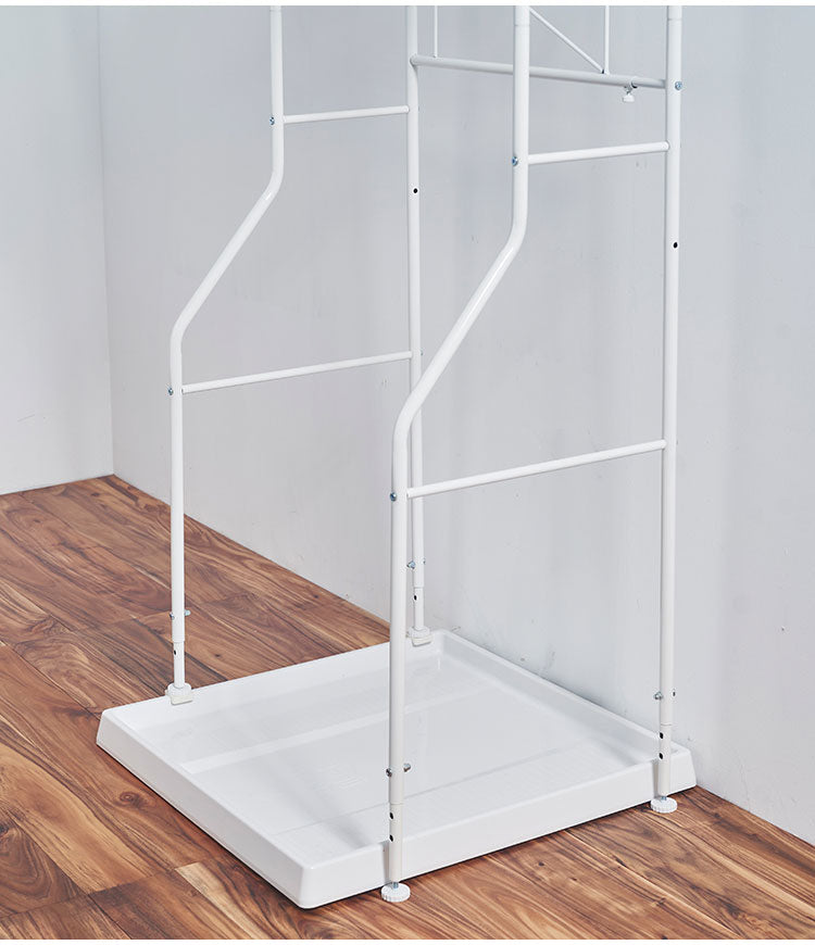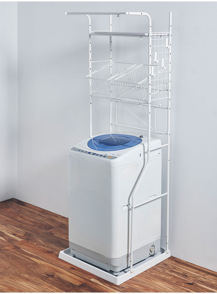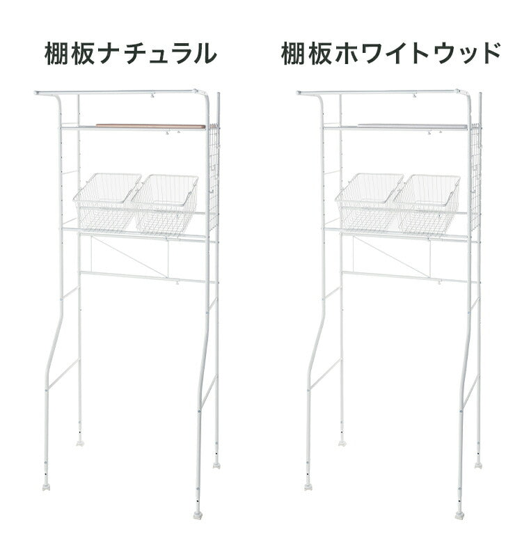 ランドリーラック 伸縮式 幅59~87 置き型 取り外しできるバスケット2個付き カゴ付き 脚段差対応 防水パン対応 洗濯機ラック ランドリー 棚 ラック ランドリー収納(代引不可)