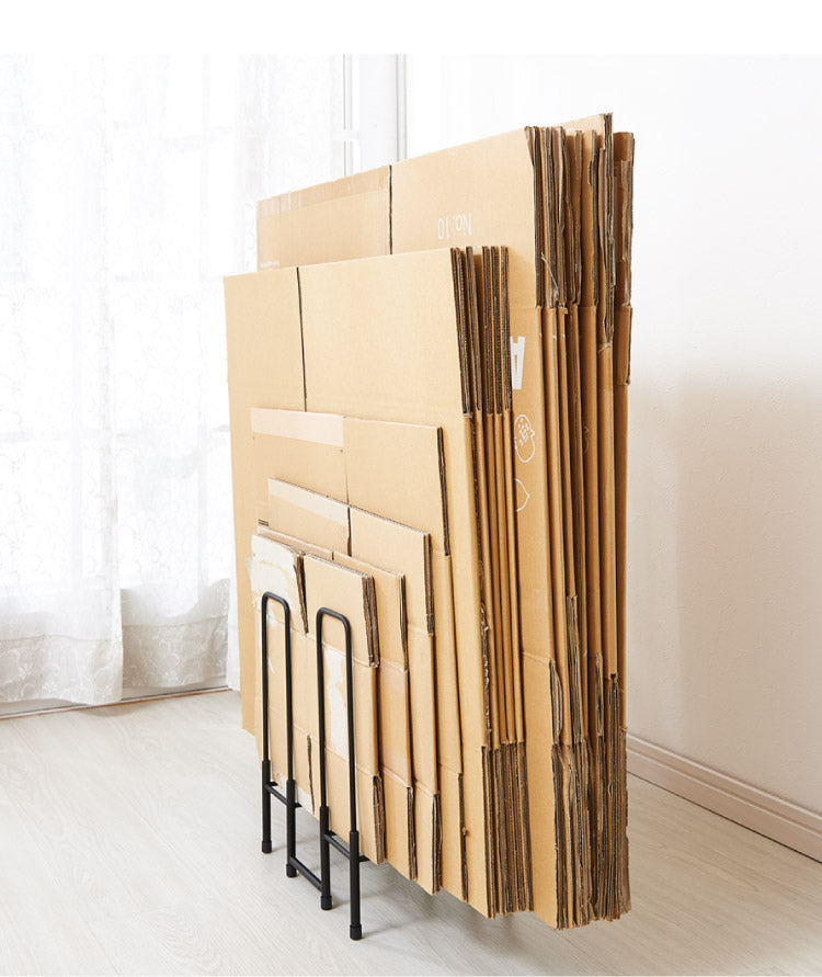 デッドスペースを有効活用しながら、かさばるダンボールをスッキリ収納。薄型だから部屋の隅に置いても邪魔になりません。