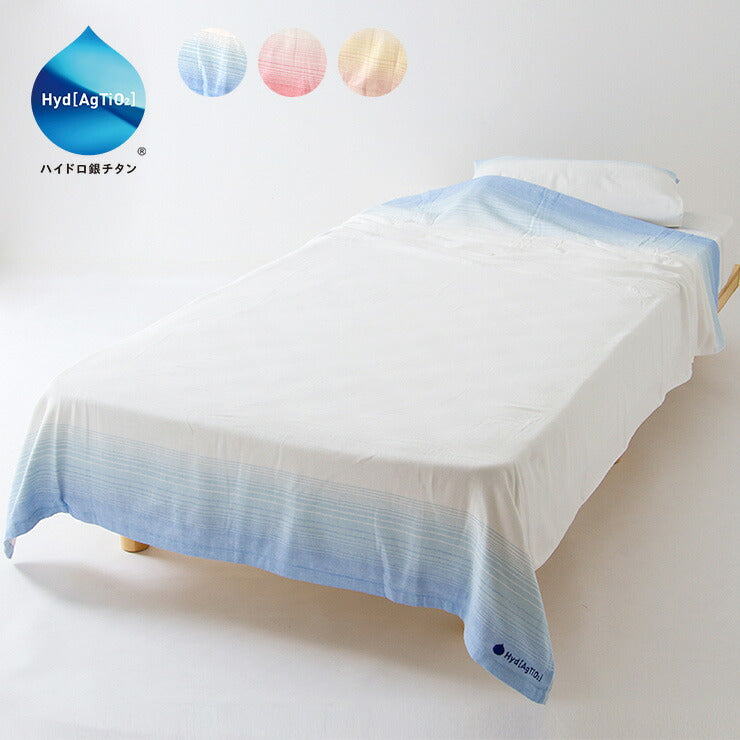 タオルケット シングル 花粉を水に変える グラデボーダー+2 ハイドロ銀チタン 綿100% 日本製 洗える 花粉 ホコリ ニオイ 細菌 ウィルス 水に変える タオル 肌掛け おしゃれ ブランケット