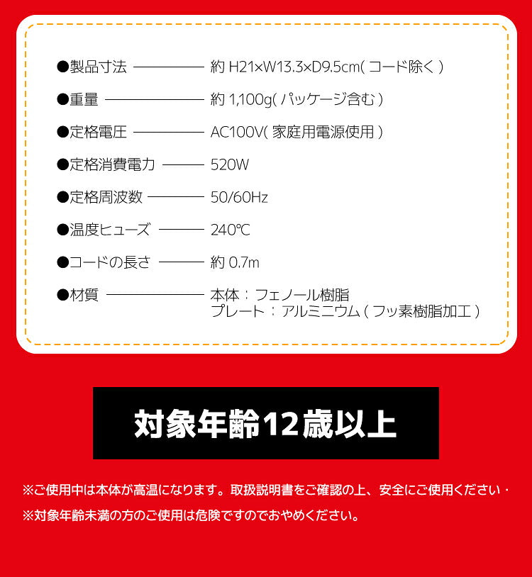 ●材質 本体:フェノール樹脂、プレート:アルミニウム(フッ素樹脂加工)