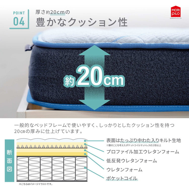 ・独立したコイルがそれぞれ身体の曲線に合わせて支えるポケットコイルマットレスです。