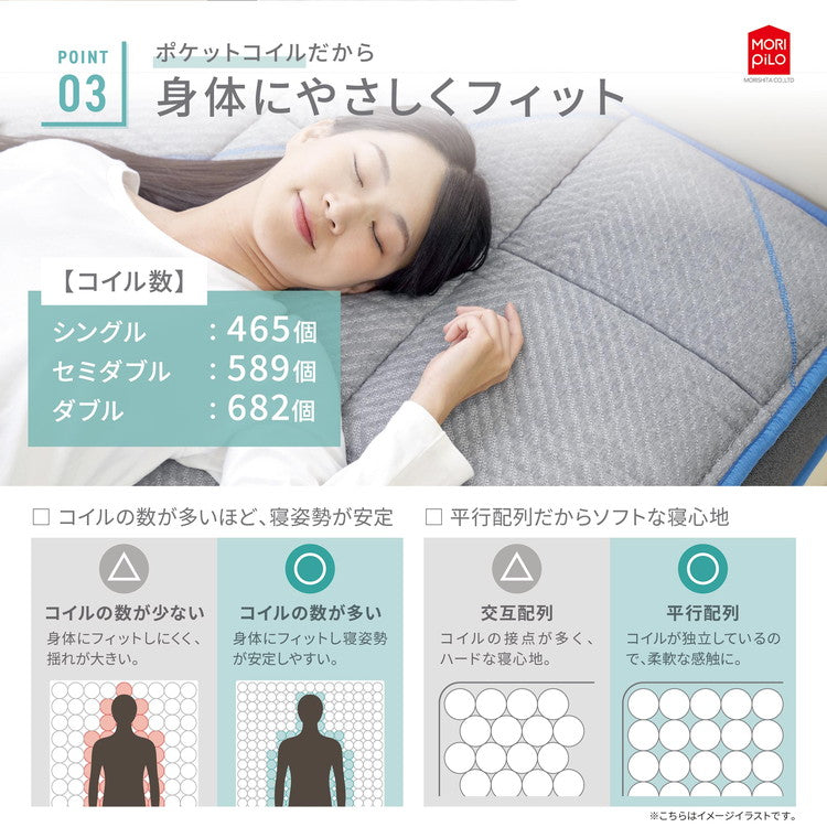 ・独立したコイルがそれぞれ身体の曲線に合わせて支えるポケットコイルマットレスです。
