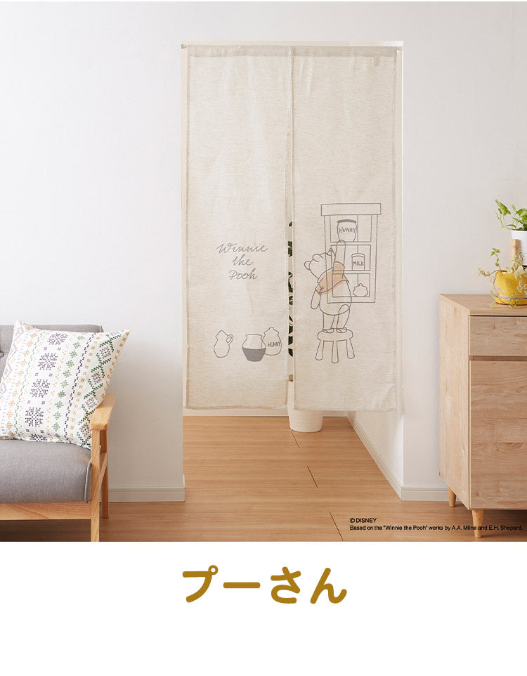 ディズニー のれん 幅85 丈150 ミッキーマウス くまのプーさん ベージュ ピンク 間仕切り カーテン のれん 可愛い かわいい Disney キャラクター(代引不可)