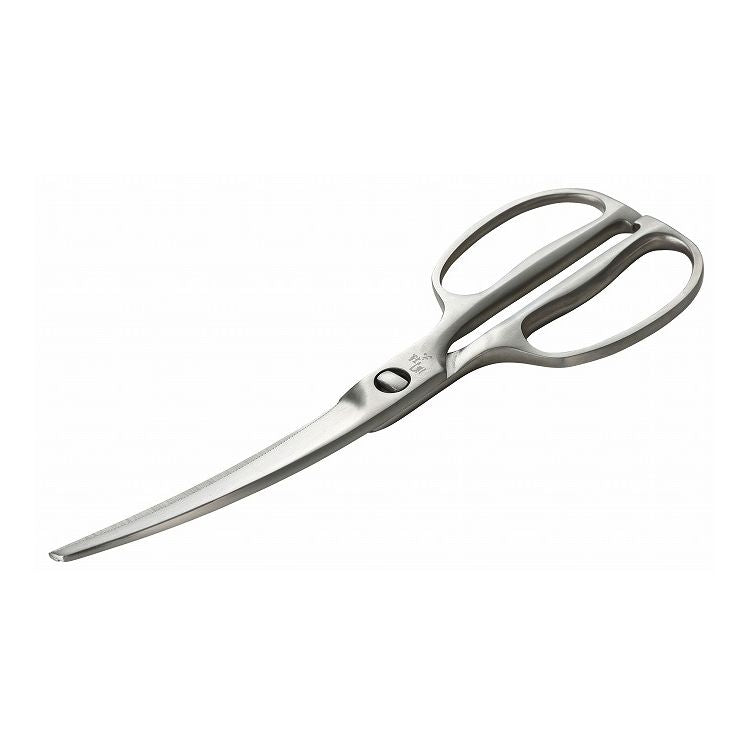 凹凸形状のカーブ刃で食材が切りやすい、オールステンレスのキッチンバサミ。「関孫六」シリーズ。