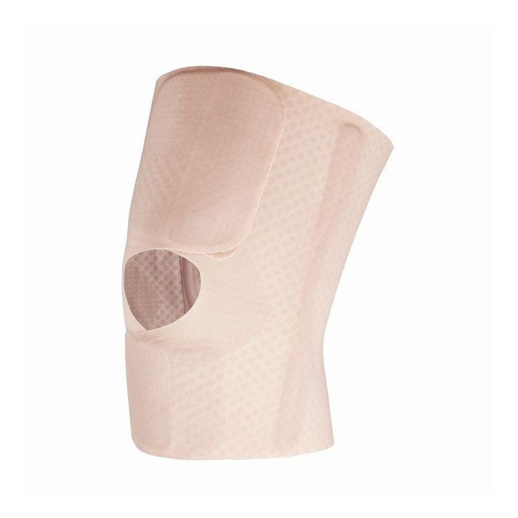 薄さ約0.6mmで、膝と一体化したようなフィット感の膝用サポーター。縫い目がなく薄いので吸い付くように膝にフィットします。薄さの秘密はドット樹脂プリントの密度と形状。生地の伸びを抑制したい箇所は高密度、伸ばす箇所は密度を荒くすることで、安定したサポート力と薄さを実現。