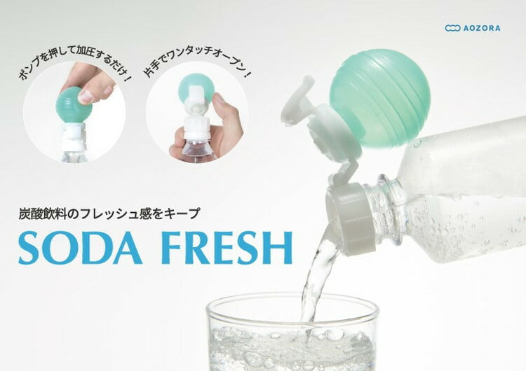 押すだけ簡単、炭酸抜けを防ぐソーダフレッシュ。ポンプを押すだけで加圧し、空気の圧力で炭酸抜けを防ぐ。500ml~1500mlまでのペットボトルに使える。