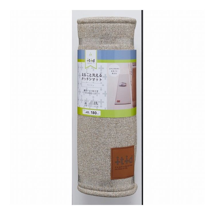 アール まるごと洗える キッチンマット 180×45cm ベージュ おしゃれ キッチン用マット 台所 フロアマット ファブリック(代引不可)
