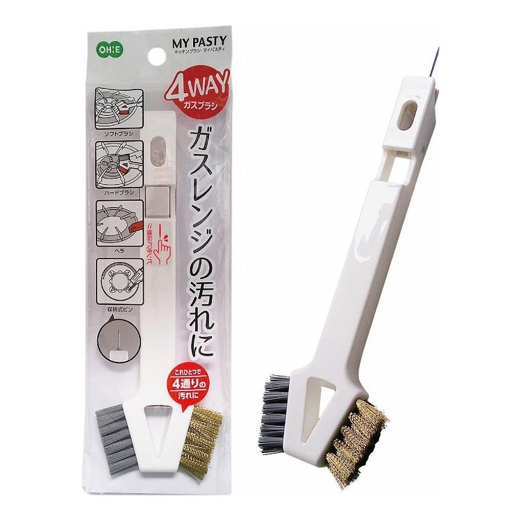 バーナー、バーナーキャップ、五徳などの汚れ落としに便利な、4WAYガスブラシ。