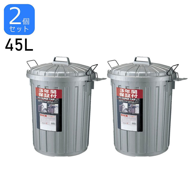 2個セット ゴミ箱 ポリバケツ スーパーカン(L) ガンメタリック L-112C GM 屋外 ダストボックス おしゃれ シンプル モダン 45L(代引不可)