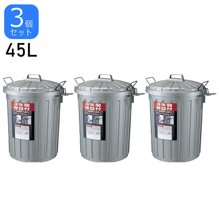 3個セット ゴミ箱 ポリバケツ スーパーカン(L) ガンメタリック L-112C GM 屋外 ダストボックス おしゃれ シンプル モダン 45L(代引不可)