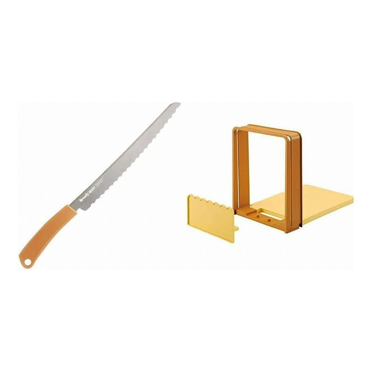ふんわりパンが上手に切れるパン切りナイフと、食パンを好みの厚さに簡単にカットできるパン切りガイドのセット。