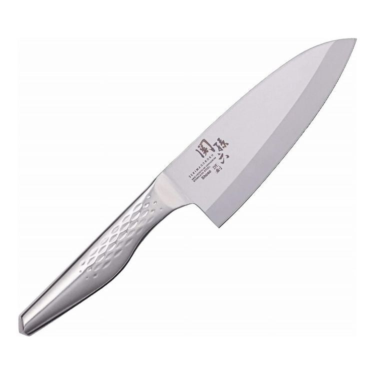 刃体からハンドルまで継ぎ目がなく、衛生的に使えるオールステンレス出刃包丁。刀鍛冶「関孫六」の名を冠した包丁シリーズ。裏スキ加工を施すことで刃体が薄くなり、爽快な切れ味を実現。