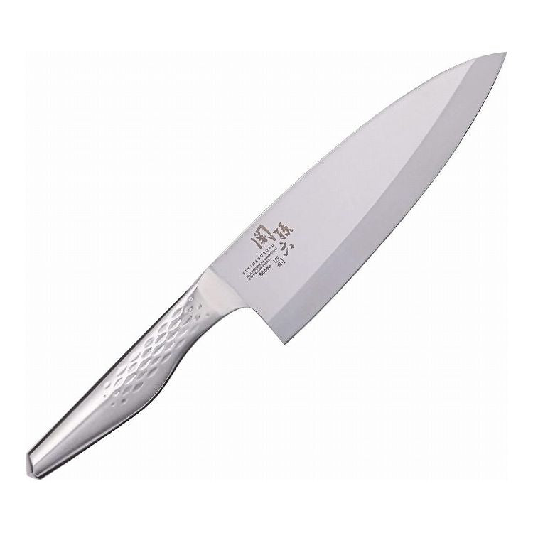 刃体からハンドルまで継ぎ目がなく、衛生的に使えるオールステンレス出刃包丁。刀鍛冶「関孫六」の名を冠した包丁シリーズ。裏スキ加工を施すことで刃体が薄くなり、爽快な切れ味を実現。