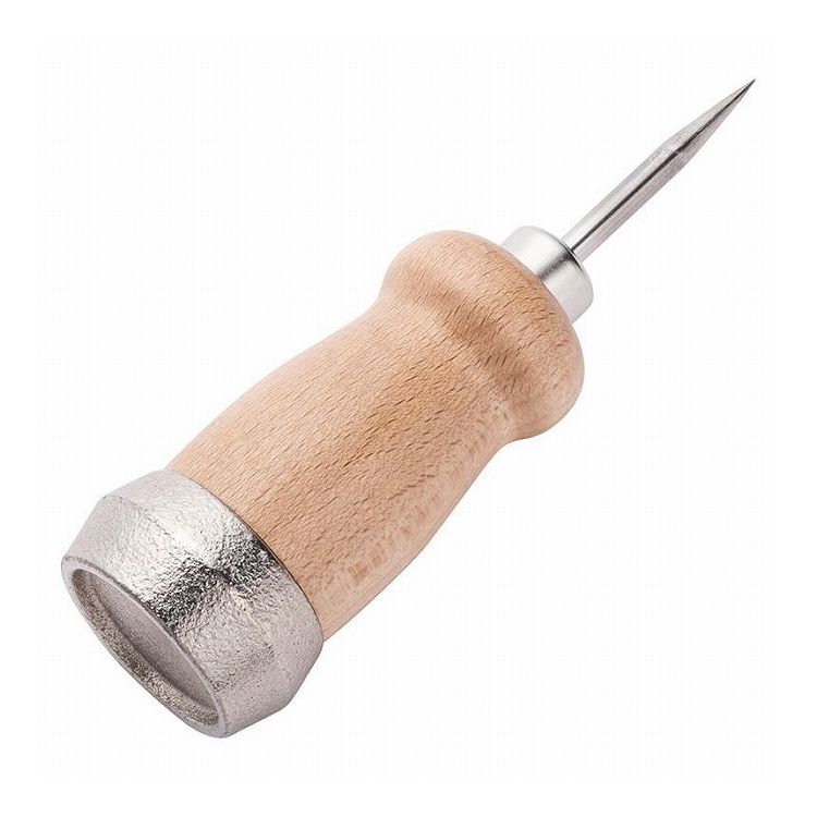 氷の塊を砕くのに便利な、砕氷用の錐。割った氷を布巾に包み柄の金属部で砕くと、クラッシュアイスが作れる。針部分が短いショートサイズ。 コンパクトに収納できる。柄部は濡れても滑りにくい天然木。 握りやすく滑りにくいグリップ形状。