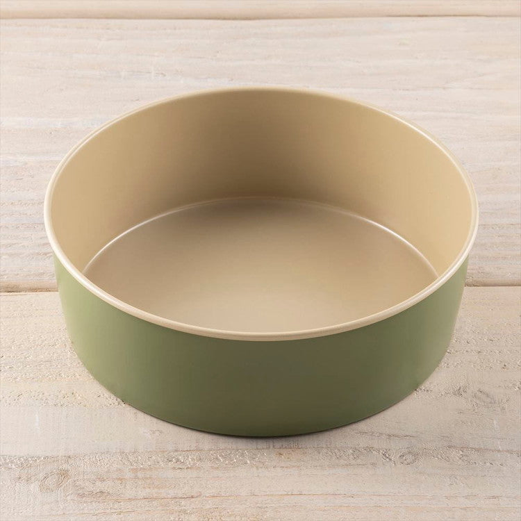 環境負荷の高いフッ素の使用量を削減し、代わりにヤシの葉由来のワックスをコーテイングに使用した、環境に配慮した新素材のケーキ型です。生地の離型性がよく、コーティングもはがれにくいため長く使用可能です。