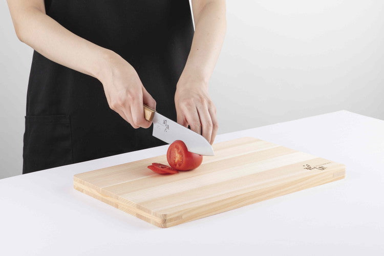 木の風合いが活きる美しい白木ハンドルが特徴の三徳包丁。刀鍛冶の信念を受け継いだ「関孫六」シリーズ。刃付け跡にできる角を滑らかに研磨する三工程刃付けにより食材の切断抵抗を小さくし、爽快な鋭い切れ味を実現。