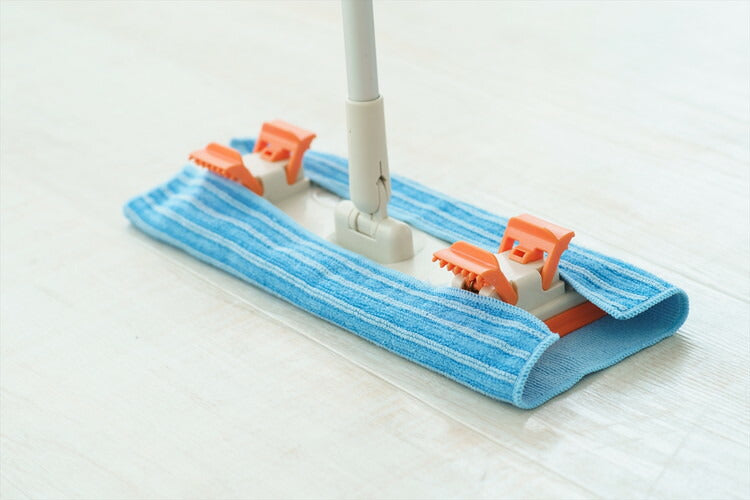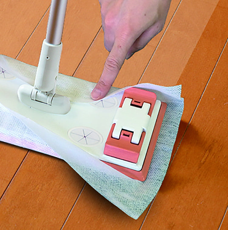 【クリップ式で簡単取付】厚めの雑巾もしっかり固定するクリップで簡単に着脱可能です。付属のクロスや、お手持ちの雑巾・フローリングシート、布切れを取り付けて使用することができます。