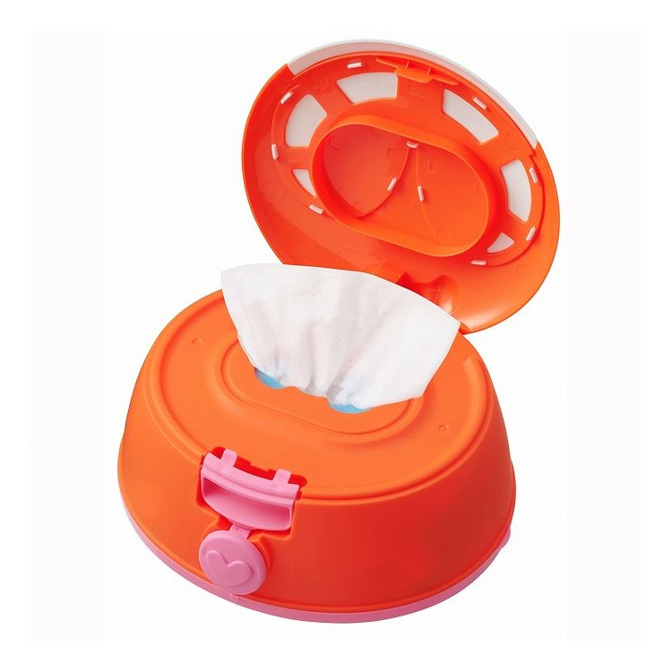 お子様に大人気「ドキンちゃん」の顔型がかわいい、おしりふきケース(おしりふき60枚×1個入り)。ワンプッシュオープンで、片手で簡単に開けられる。お子様が勝手に開けられないチャイルドロック機能付きでいたずら防止。